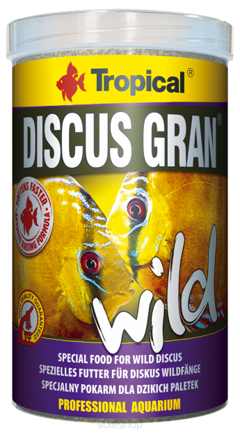 Discus Gran Wild to wieloskładnikowy pokarm w formie wolno tonącego granulatu z dodatkiem alg, kryla i owoców. Przeznaczony do codziennego karmienia dzikich paletek oraz innych wymagających gatunków ryb pozyskanych z ich naturalnego środowiska.