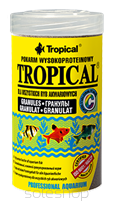 Tropical Granulat to wysokobiałkowy pokarm w formie granulatu. Przeznaczony jest do codziennego karmienia ryb wszystkożernych i mięsożernych. Regularnie stosowany zapewnia efektywny przyrost masy ciała i dostarcza niezbędnych witamin oraz mikro- i makroelementów. Szczególnie zalecany jest do karmienia tarlaków i młodych ryb większych gatunków, którym dostarcza cennego białka pochodzenia roślinnego i zwierzęcego, bogatego w niezwykle ważne aminokwasy egzogenne. Tonący granulat dociera również do strefy dennej, gdzie może być pobierany przez kiryski i inne niewielkie sumy. Wysoką wartość odżywczą karmy Tropical Granulat można wykorzystać również w okresie rekonwalescencji, gdy ryby potrzebują szczególnej troski i wysokoenergetycznych, łatwostrawnych pokarmów, bogatych w witaminy i mikroelementy. Na uwagę zasługuje wysoki dodatek stabilizowanej witaminy C, która między innymi wzmacnia odporność ryb na choroby, przyspiesza gojenie się ran i otarć, a także odgrywa istotną rolę w rozwoju młodych ryb, zapobiegając deformacjom układu kostnego.